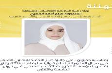 25.يونيو.2025 تهنئةتهنئ كلية الشريعة و الدراسات الإسلامية الدكتورة/مريم أحمد الكندري الأستاذ المشارك في قسم الفقه المقارن و..صورة